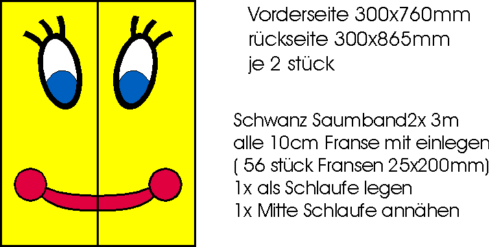 beträgt etwa 8-10 Stunden. Eine Sache, die sich wirklich lohnt. Die *.gif Bilder zeigen alle Teile mit Zuschnittmaßen (ohne Saum !! [nicht vergessen]). Die Art und Weise des bauens ist