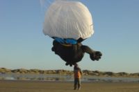 Jungfernflug bei +5 Grad und fast keinem Wind starten. Bevor es so weit war, mußten noch die vielen Waageschnüre eingestellt werden. In einer fast nicht enden wollenden Knüpferei näherte sich der Drachen